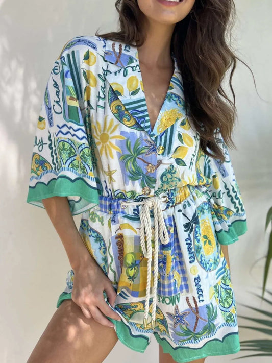 Printed Collared Neck Half Sleeve Romper