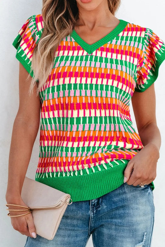 Contrast Striped V-Neck Knit Top