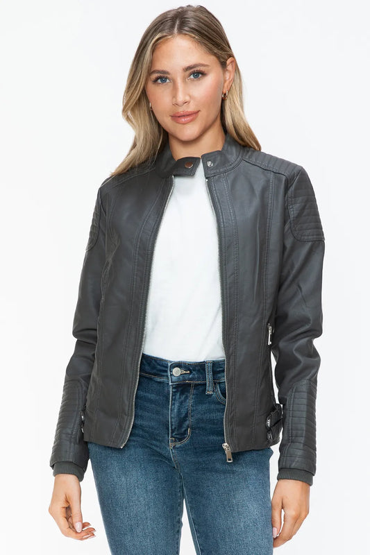 Snobbish Faux Leather Biker Jacket with Side Zip Pockets