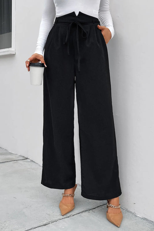 Perfee High Waist Ruched Tie Front Wide Leg Pants