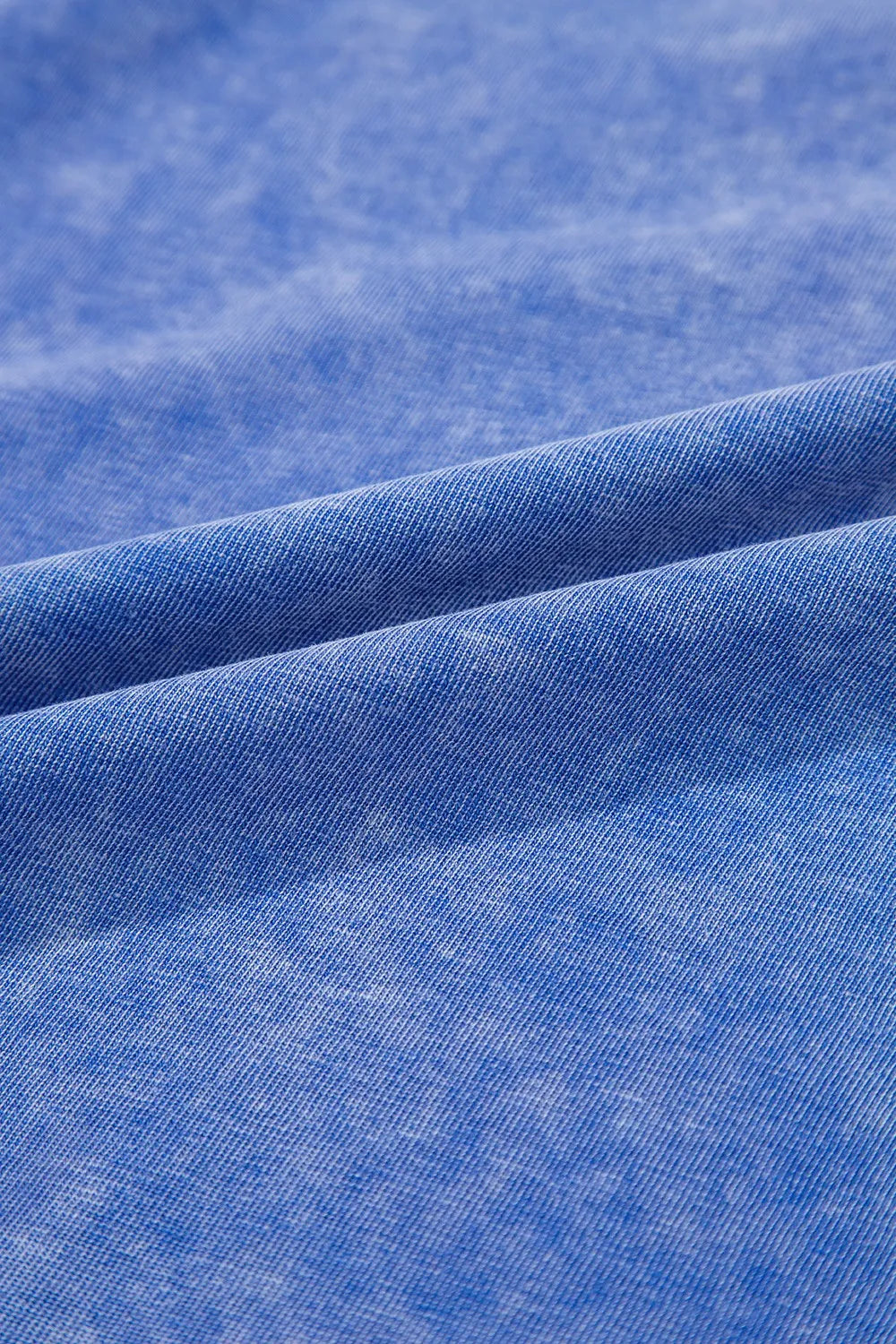 Acid Wash Star Patched Rolled Trim Top and Pants Set
