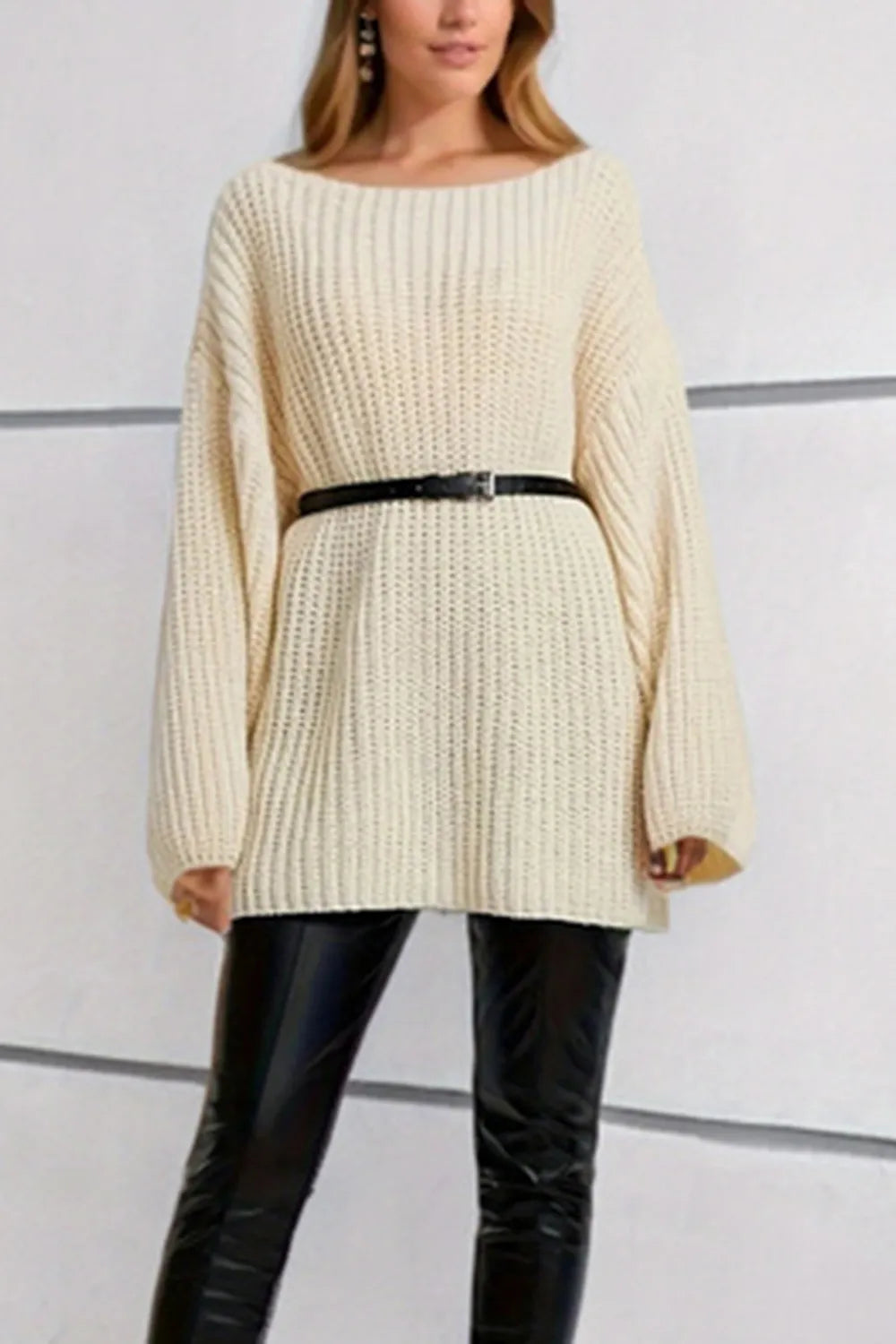 Boat Neck Dropped Shoulder Mini Sweater Dress