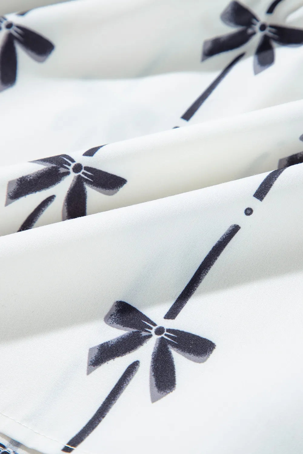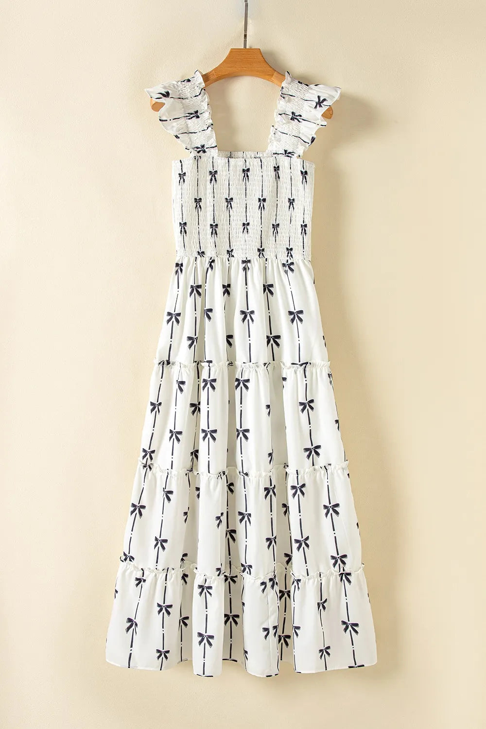 Bow Print Smocked Square Neck Ruffle Tiered Maxi Dress