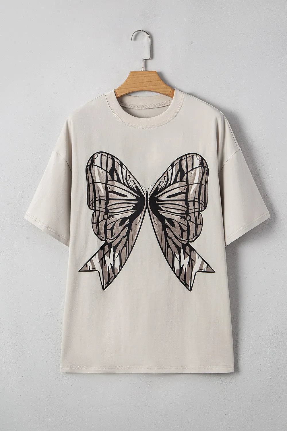 Casual Oversize Bow Drop Shoulder Tunic Casual Tee