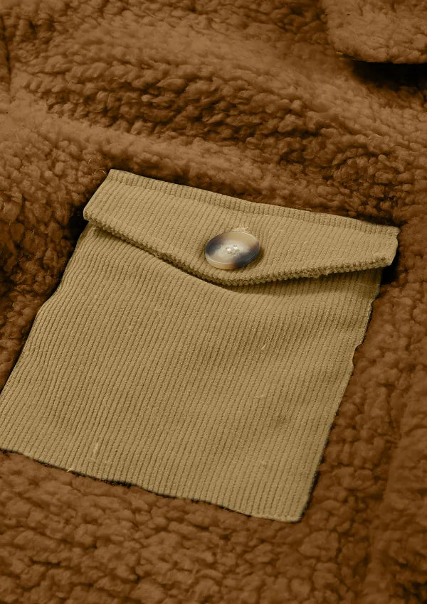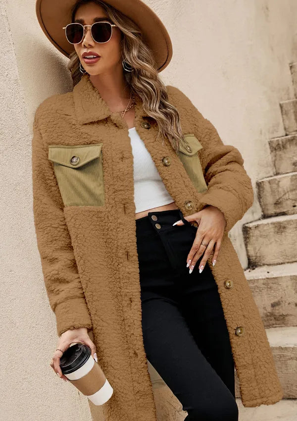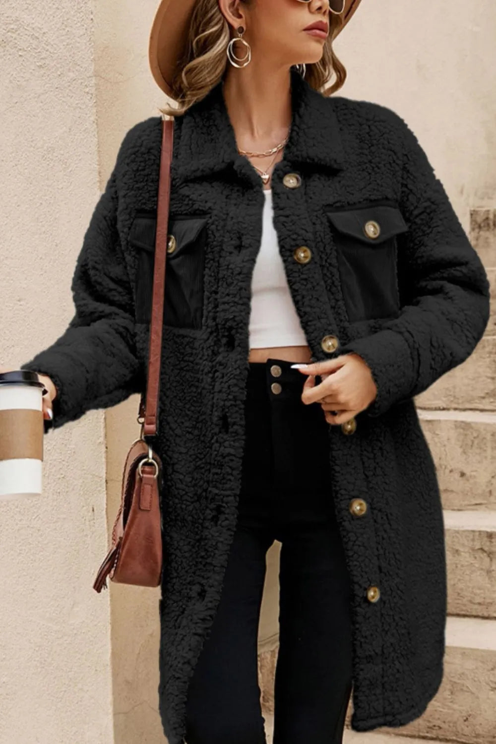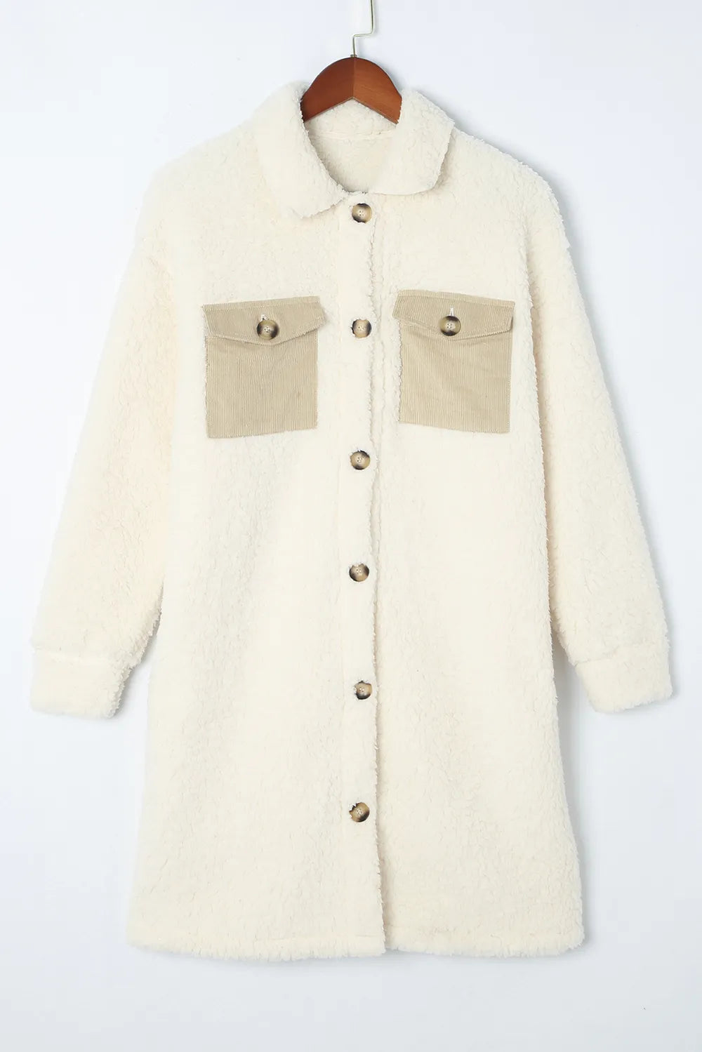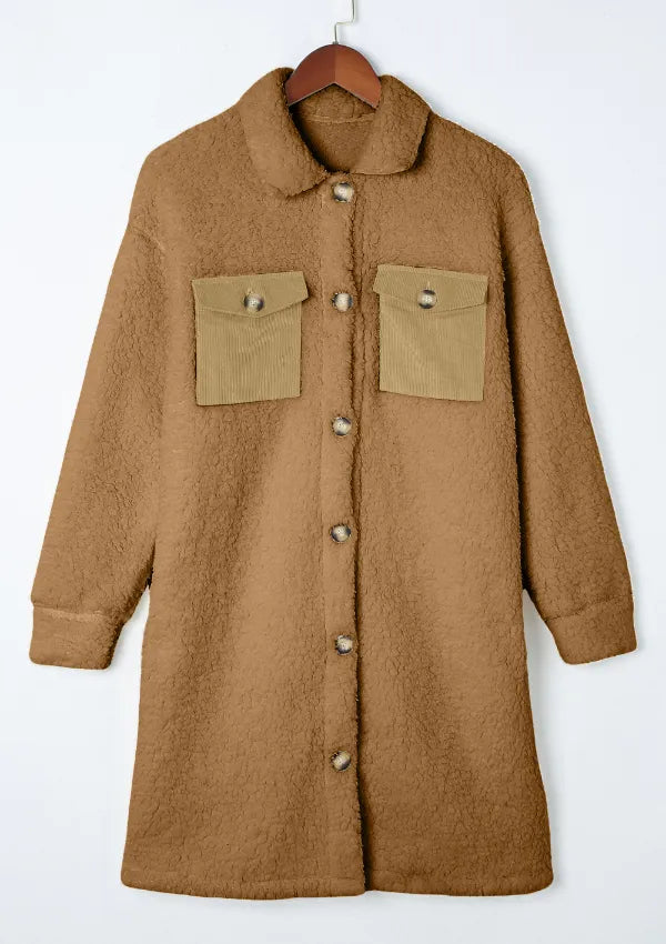 Collared Neck Long Sleeve Longline Teddy Jacket
