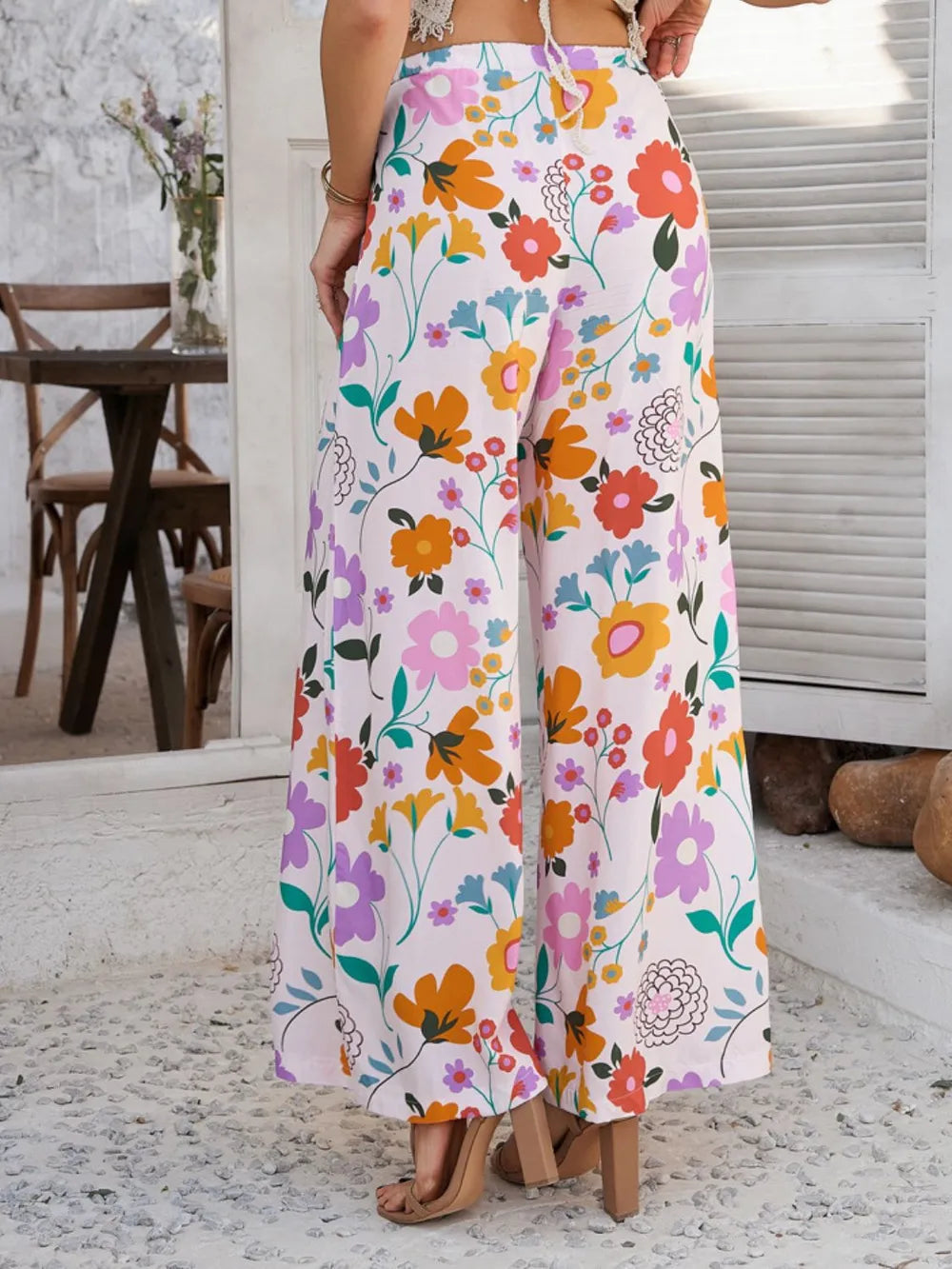 Devine Drawstring Printed Wide Leg Pants
