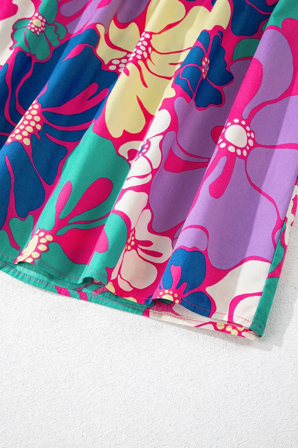 Floral Print Shirred Spaghetti Strap Loose Maxi Dress