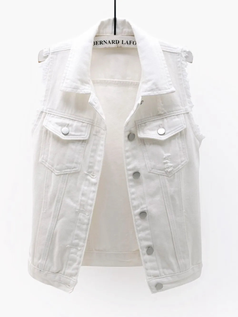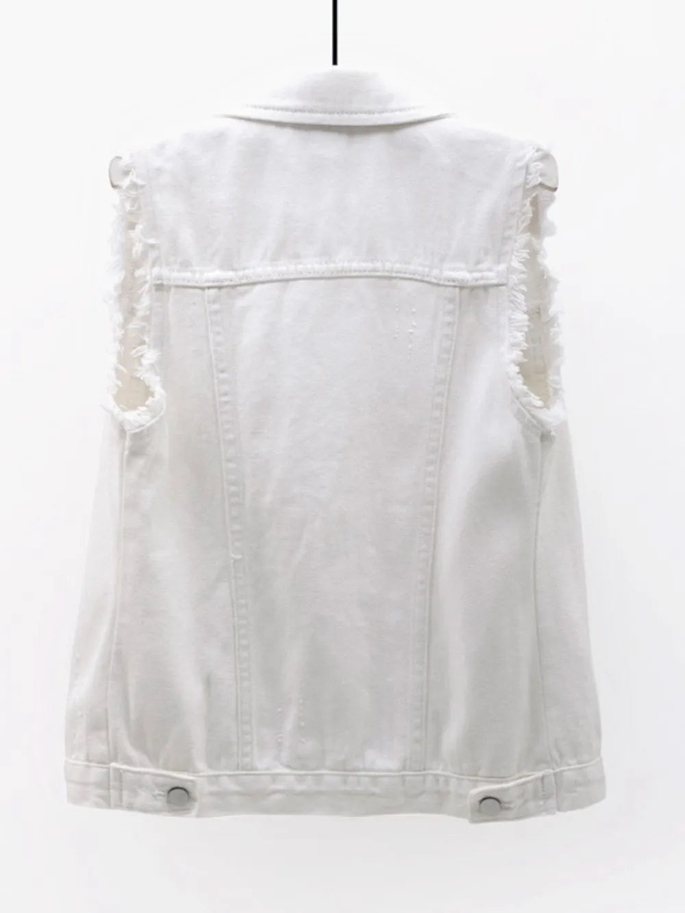Full Size Button Down Raw Hem Sleeveless Denim Jacket Plus Size