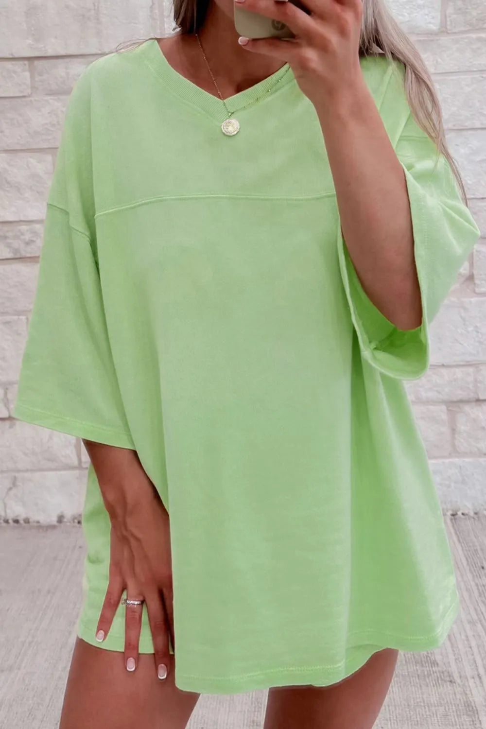 Loose V Neck Half Sleeve Tee and Drawstring Shorts Plus Size
