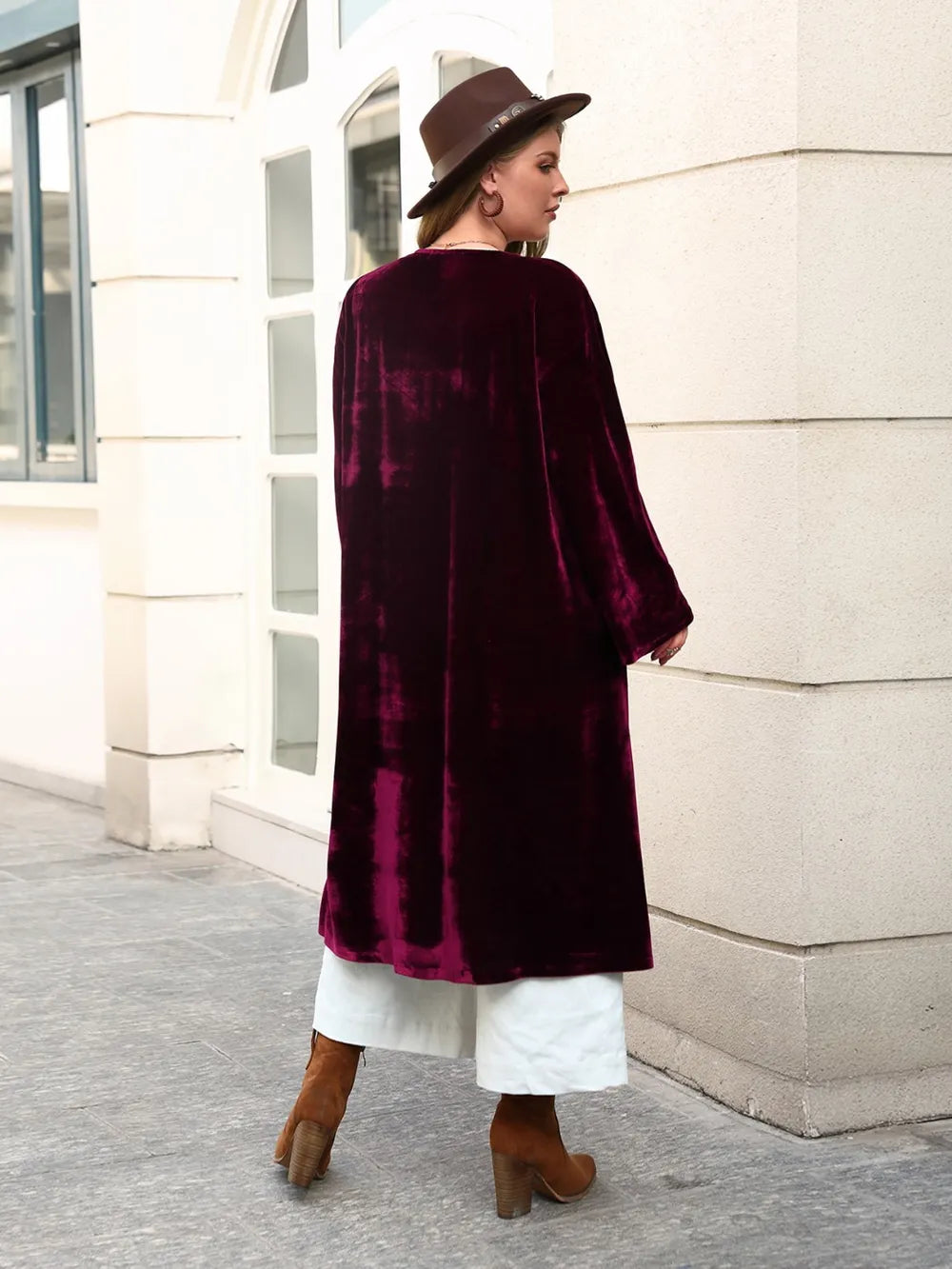 Plus Size Printed Open Front Long Sleeve Cardigan