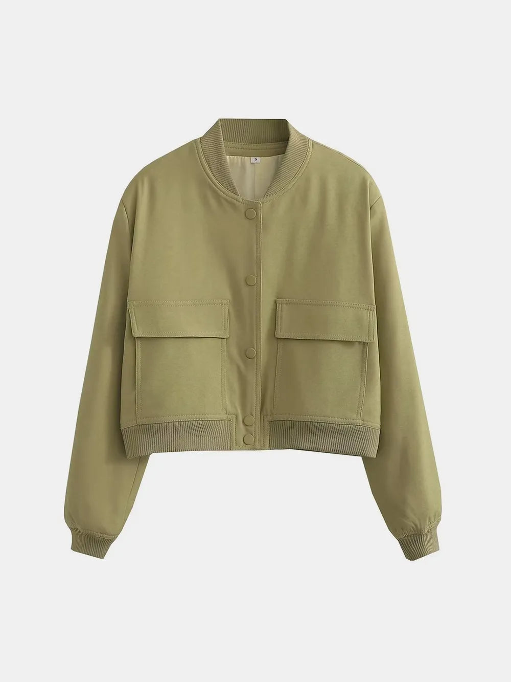 Pocketed Snap Down Baseball Collar Jacket