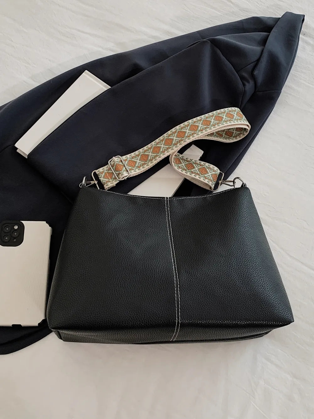 PU Leather Geometric Pattern Strap Shoulder Bag