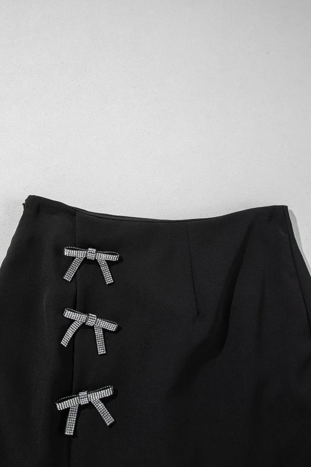 Rhinestone Bow Wrap High Waist Mini Skirt