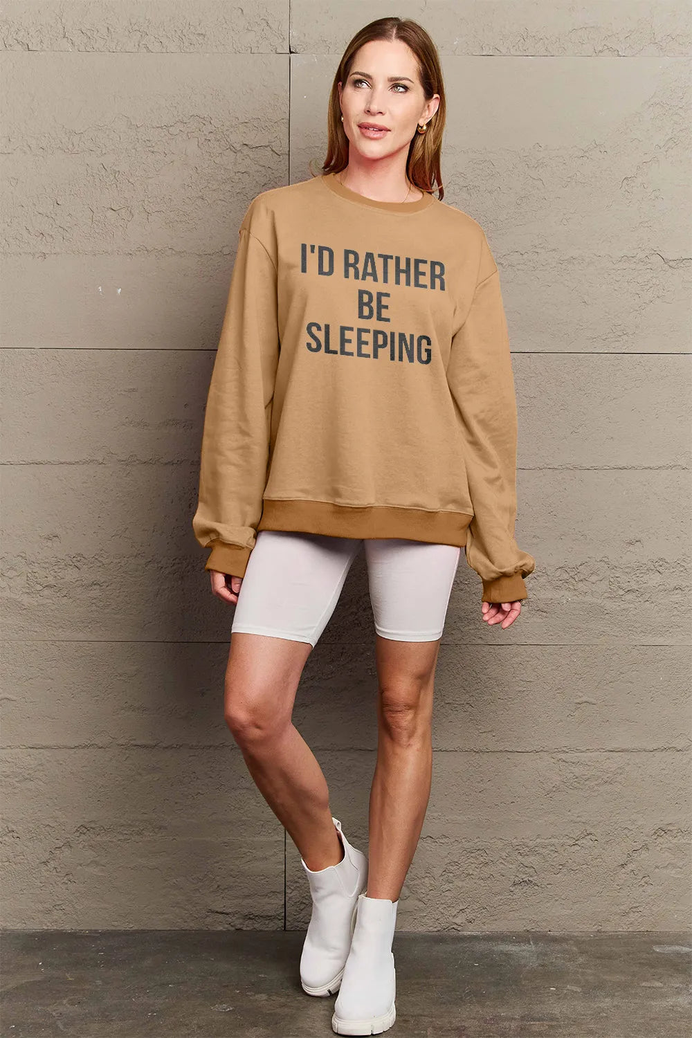 Simply Love Full Size I'D RATHER BE SLEEPING Round Neck Sweatshirt