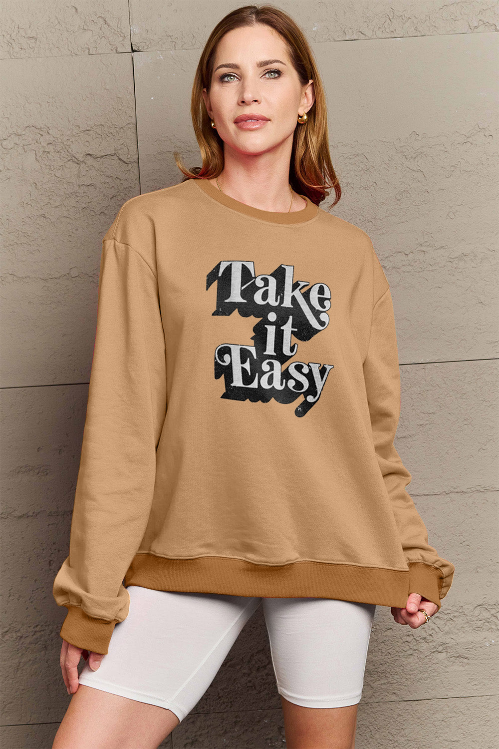 Simply Love Full Size TAKE IT EASY Graphic Sweatshirt