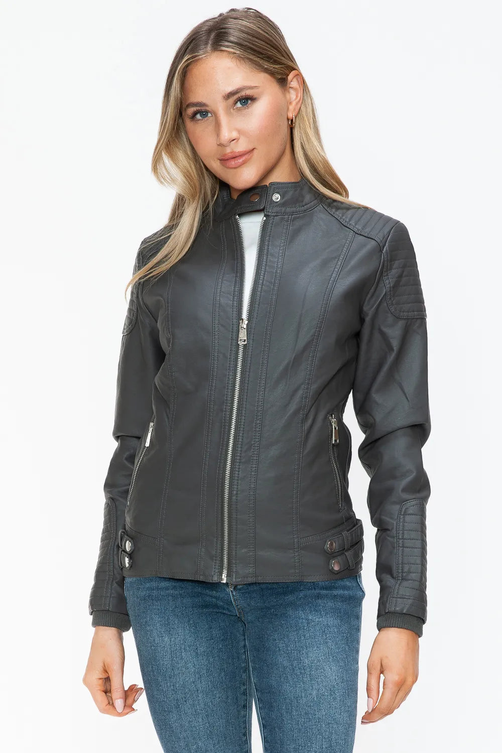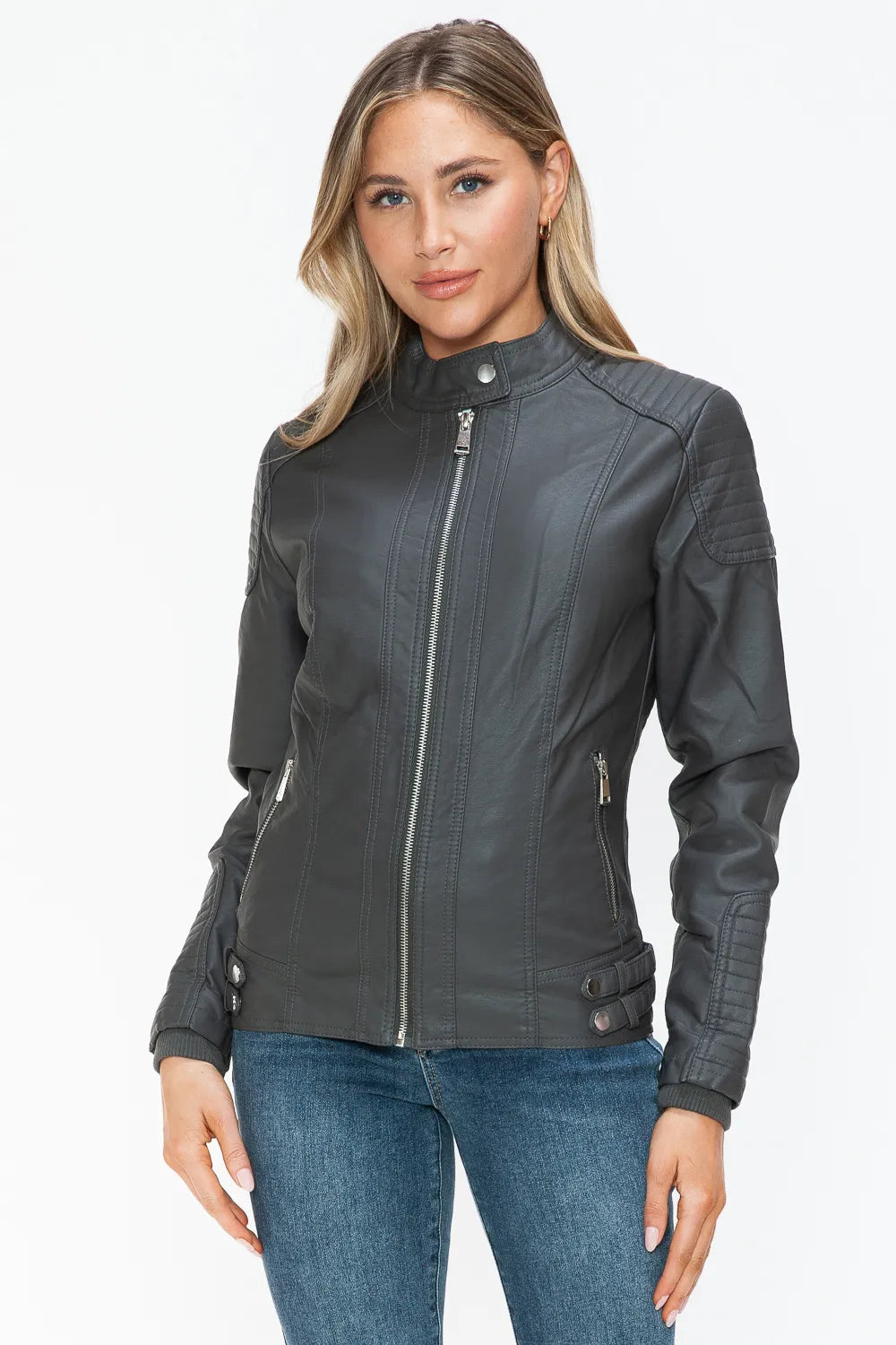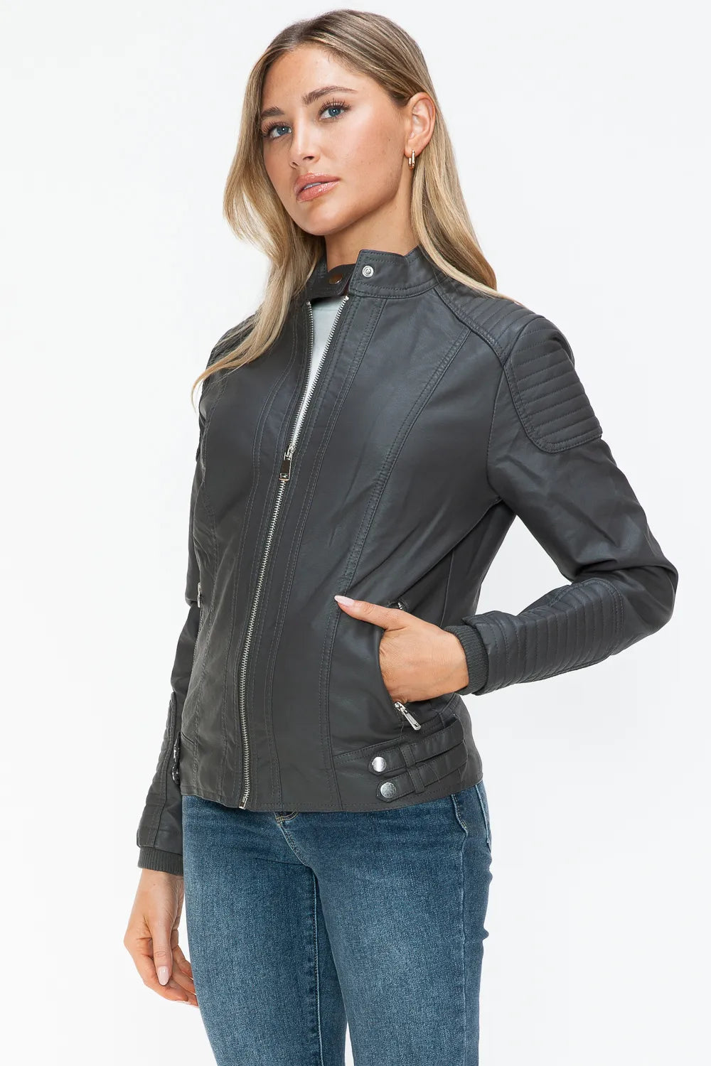Snobbish Faux Leather Biker Jacket with Side Zip Pockets