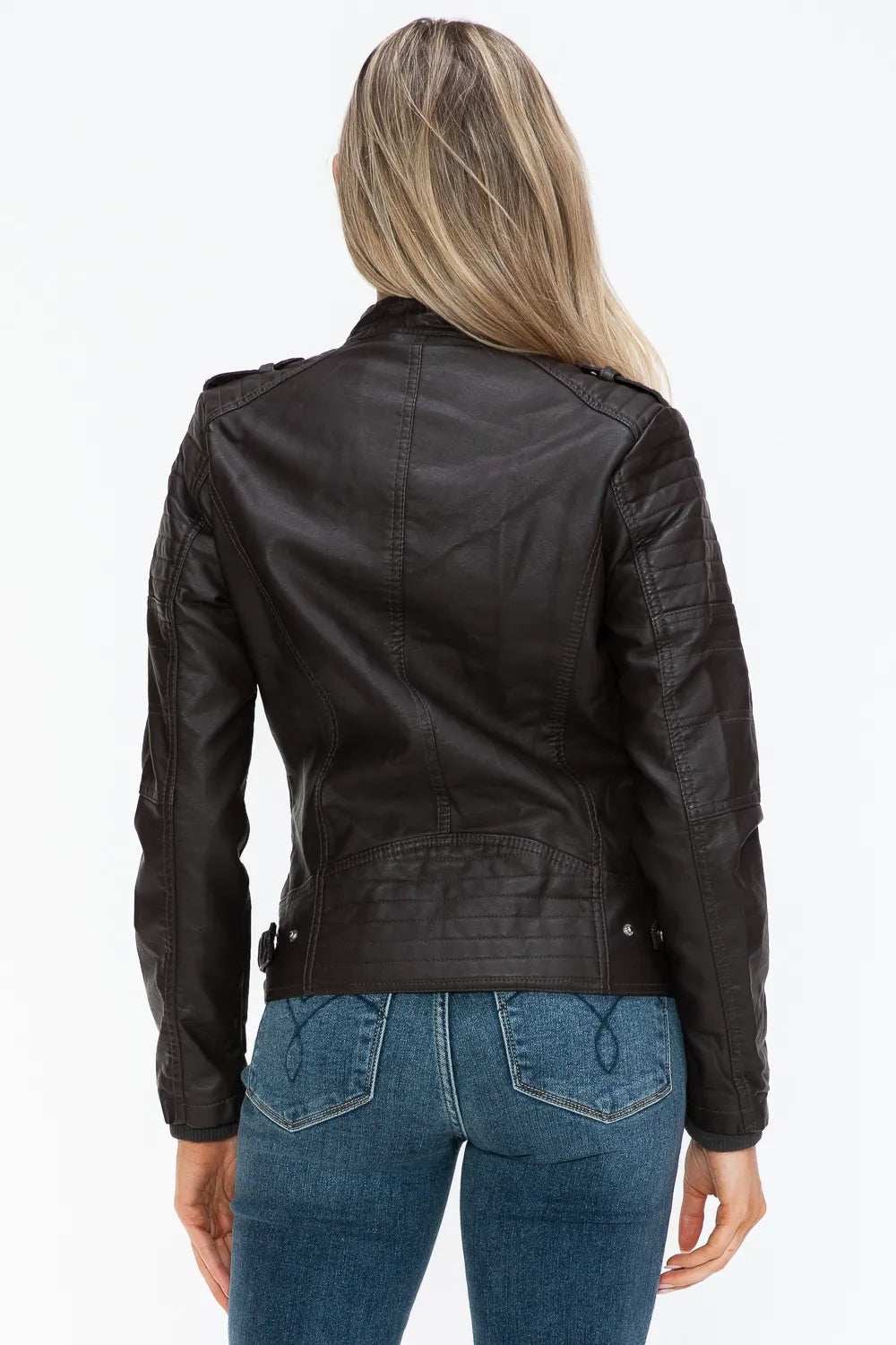 Snobbish PU Leather Biker Jacket with Side Zip Pockets