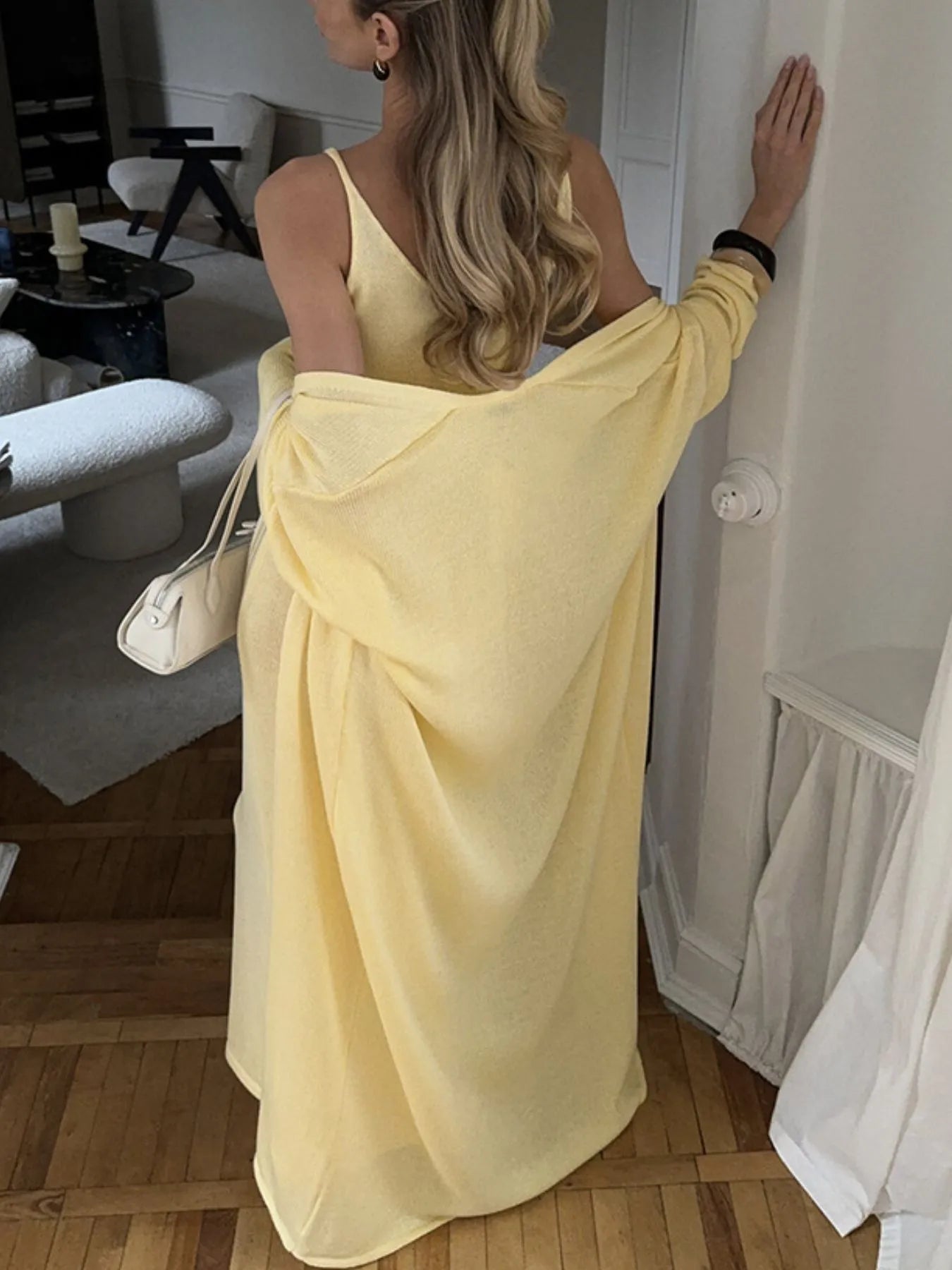V-Neck Knit Dress and Cardigan Sweater Set