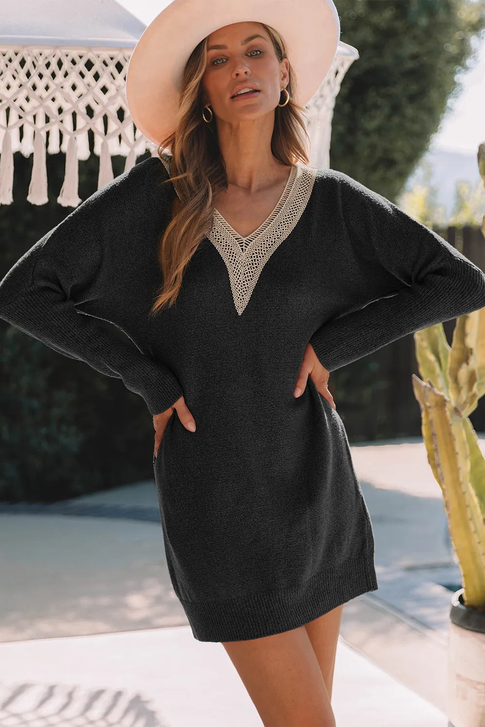 V-Neck Long Sleeve Mini Sweater Dress