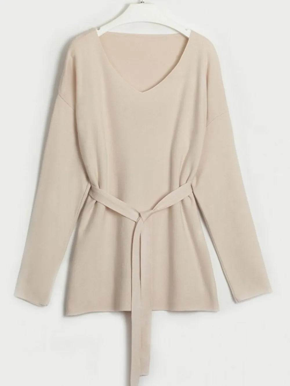 V-Neck Long Sleeve Top and Drawstring Pants Sweater Set